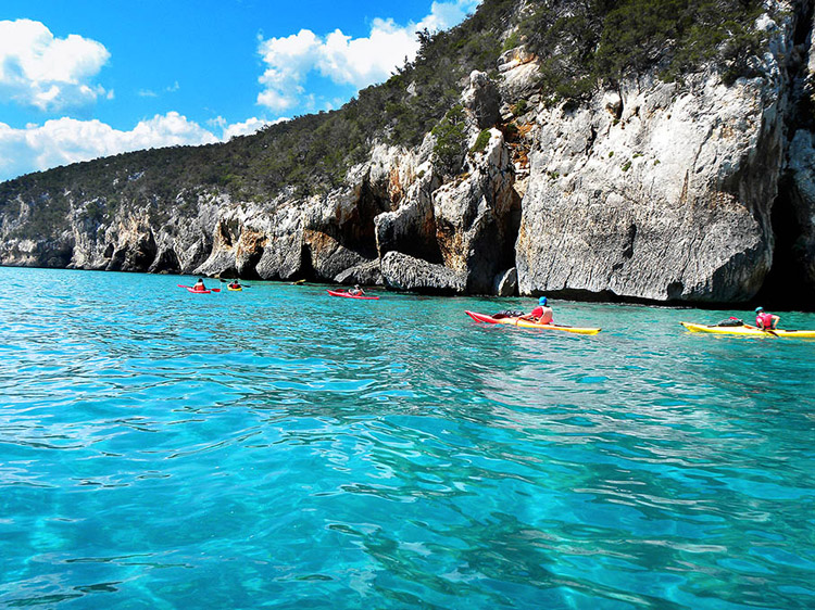 Vous pouvez faire du kayak à Cala Gonone aussi dans des itinéraires sur mesure.